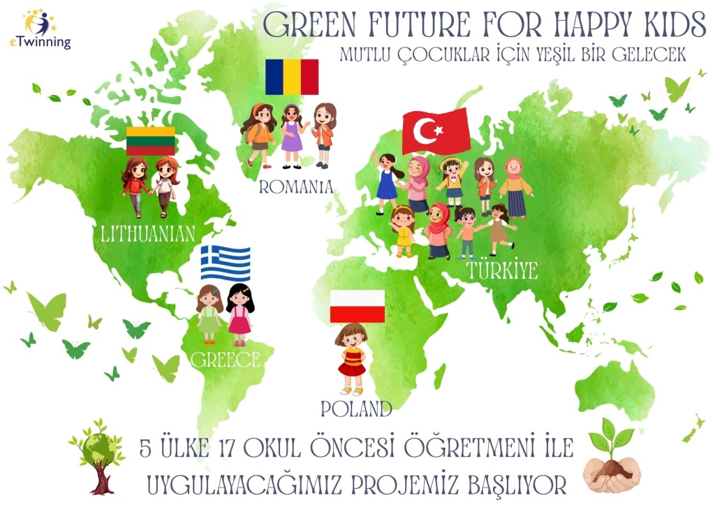 Ana sınıfı D Şubesi Öğretmeni Duygu Arar ve ögrencileri Ekim- Ocak ayları arasında ' Mutlu Çocuklar İçin Yeşil Bir Gelecek' adlı e twinning projesi yÜrÜtecektir. Proje; erken çocukluk döneminde çocukların çevreye duyarlı bireyler olarak yetişmesine katkı sağlamak, çocukların erken yaşta dogayı koruma sevgisi kazanmasını ve gelecek için daha yaşanabilir, yeşil bir dünya bilinci geliştirmesi amaclamaktadir. Projemiz çevre bilinç oluşturma Doğa sevgisi, sıfır atık .geri dönüşüm, ağaçlandırma ve ağaçlandırmanın önemi ile ilgili birçok çalışmalarla desteklenecektir.